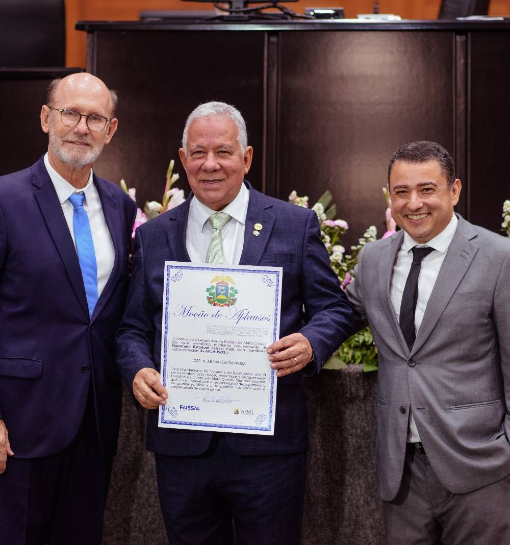 “Essa homenagem é um reconhecimento não apenas aos que aqui estão, mas a todos os notários e registradores de Mato Grosso. Sentimo-nos profundamente honrados com a Moção de Aplausos desta Casa Legislativa, que enaltece o trabalho de quem diariamente contribui para a cidadania; a dignidade e a segurança jurídica da população”, concluiu Elmúcio.