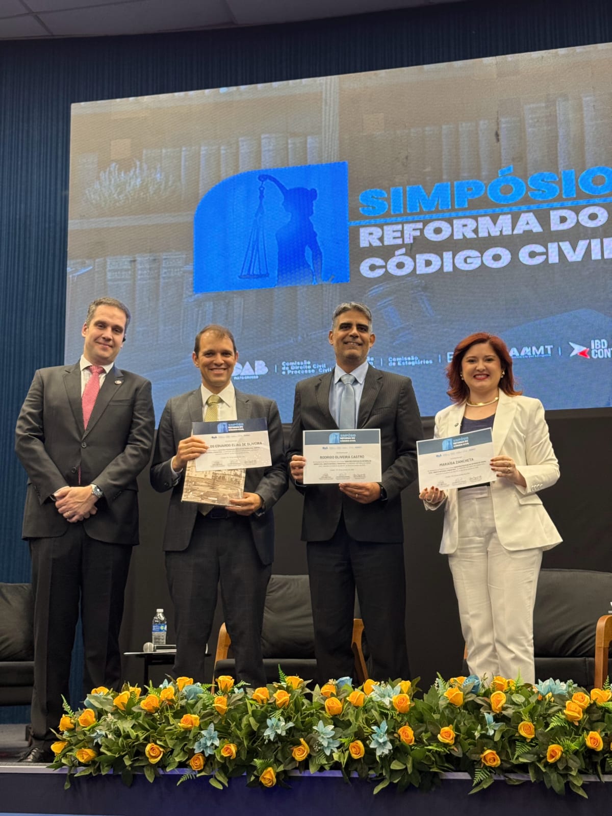 O presidente da Associação dos Registradores Civis das Pessoas Naturais Seção Mato Grosso (Arpen-MT), Rodrigo Oliveira Castro, participou nesta sexta-feira (3 de outubro) do Simpósio Reforma do Código Civil, realizado pela Ordem dos Advogados do Brasil Seccional Mato Grosso (OAB-MT). Ele esteve à frente da presidência da mesa da palestra “Questões Práticas da Reforma do Código Civil: Direito Notarial e Registral”, proferida pelo jurista e professor Carlos Eduardo Elias de Oliveira.