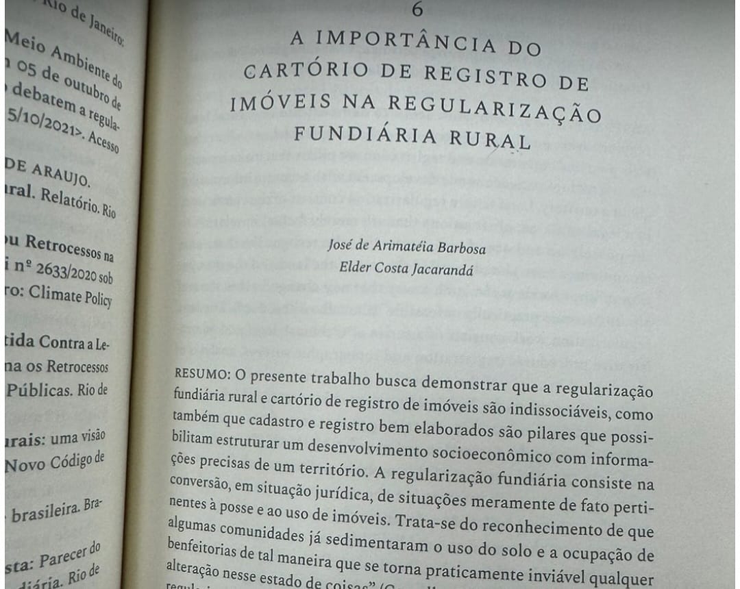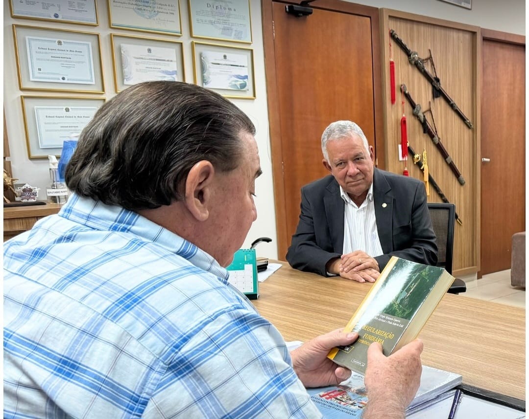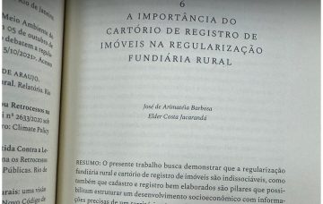 Durante a visita de cortesia, José de Arimatéia entregou o livro de sua autoria intitulado “Regularização Fundiária: Experiências Regionais”, uma publicação que reproduz suas experiências sobre a legislação fundiária brasileira. Ele afirma que regularização fundiária rural e cartório de registro de imóveis são indissociáveis e espera que a sua obra tenha força para contribuir na construção de políticas públicas que resultem num Brasil melhor, mais moderno e eficiente.
